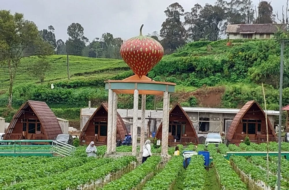 Di Dusun Stroberi, pengunjung bisa merasakan serunya memetik buah stroberi langsung dari kebun. Tersedia juga penginapan di tengah hamparan tanaman stroberi, menghadirkan suasana segar dan alami untuk liburan keluarga.