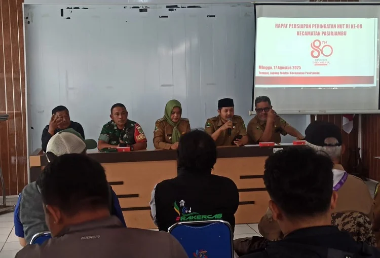 Kab. Bandung, Dikte.id | Menyambut Hari Ulang Tahun ke-80 Kemerdekaan Republik Indonesia, Pemerintah Kecamatan Pasirjambu terus mematangkan persiapan pelaksanaan Peringatan Hari Besar Nasional (PHBN) melalui rapat koordinasi bersama seluruh pemangku kepentingan, Senin (29/7/2025), di Aula Kantor Kecamatan.