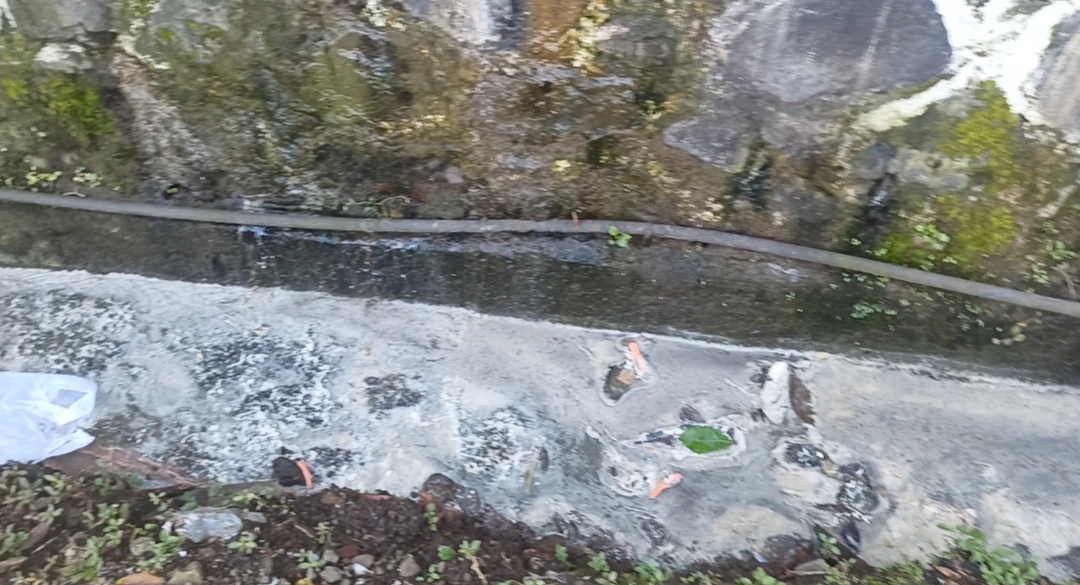 Saluran drainase berubah menjadi keruh, berbusa, kental, dan dipenuhi gumpalan limbah menyerupai lemak. Bau menyusup hingga ke dalam rumah warga.